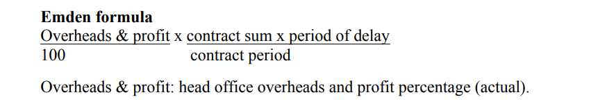 The most commonly-used formulas to calculate head office overheads and lost profit are the Hudson, Emden and Eichleay formulas. Further guidance on how to use each of these three formulas is provided in Appendix A to the SCL Delay Protocol. The Society of Construction Law has also provided a useful spreadsheet to assist with using the formulas.